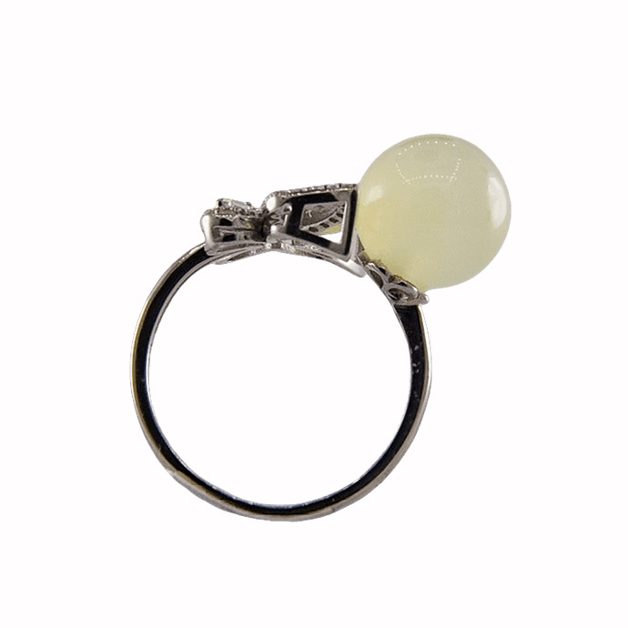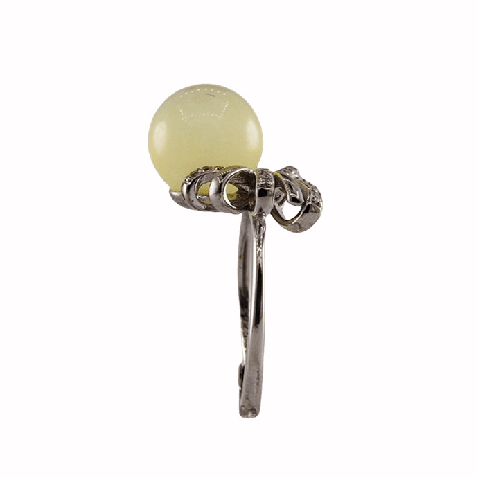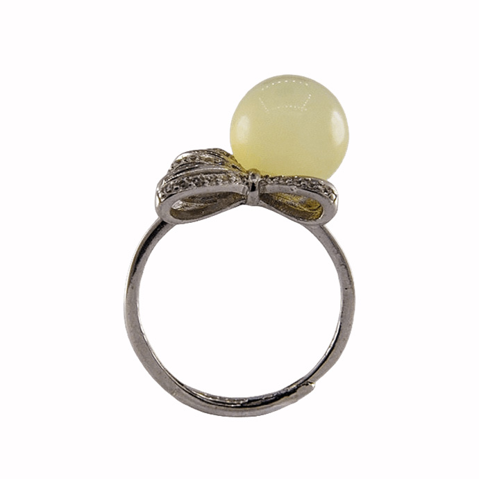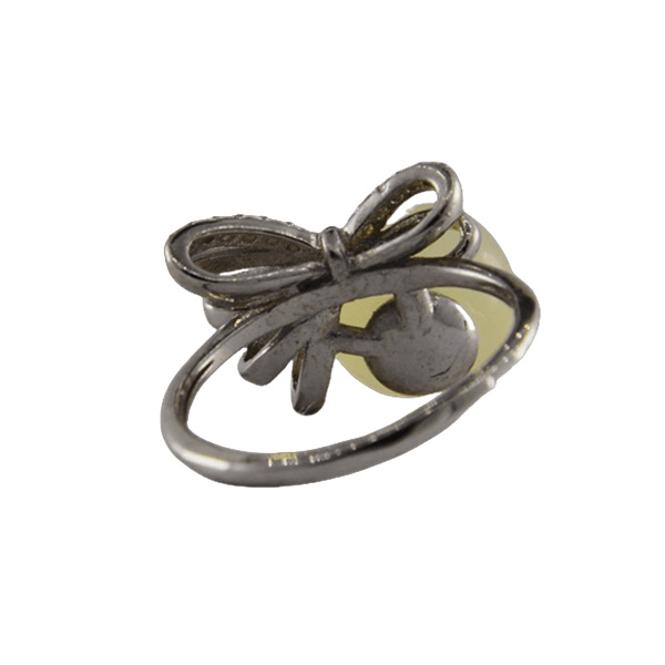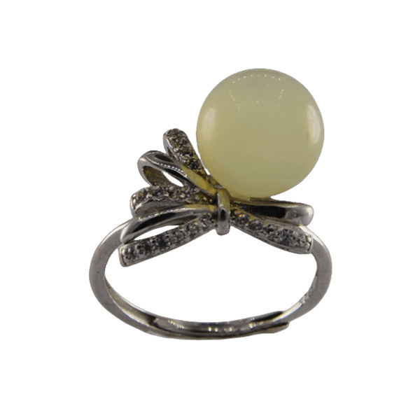 2. 戒指圈的珠子一侧有满镶小水钻锆石的蝴蝶结,给人奢侈富贵的感觉。