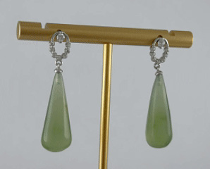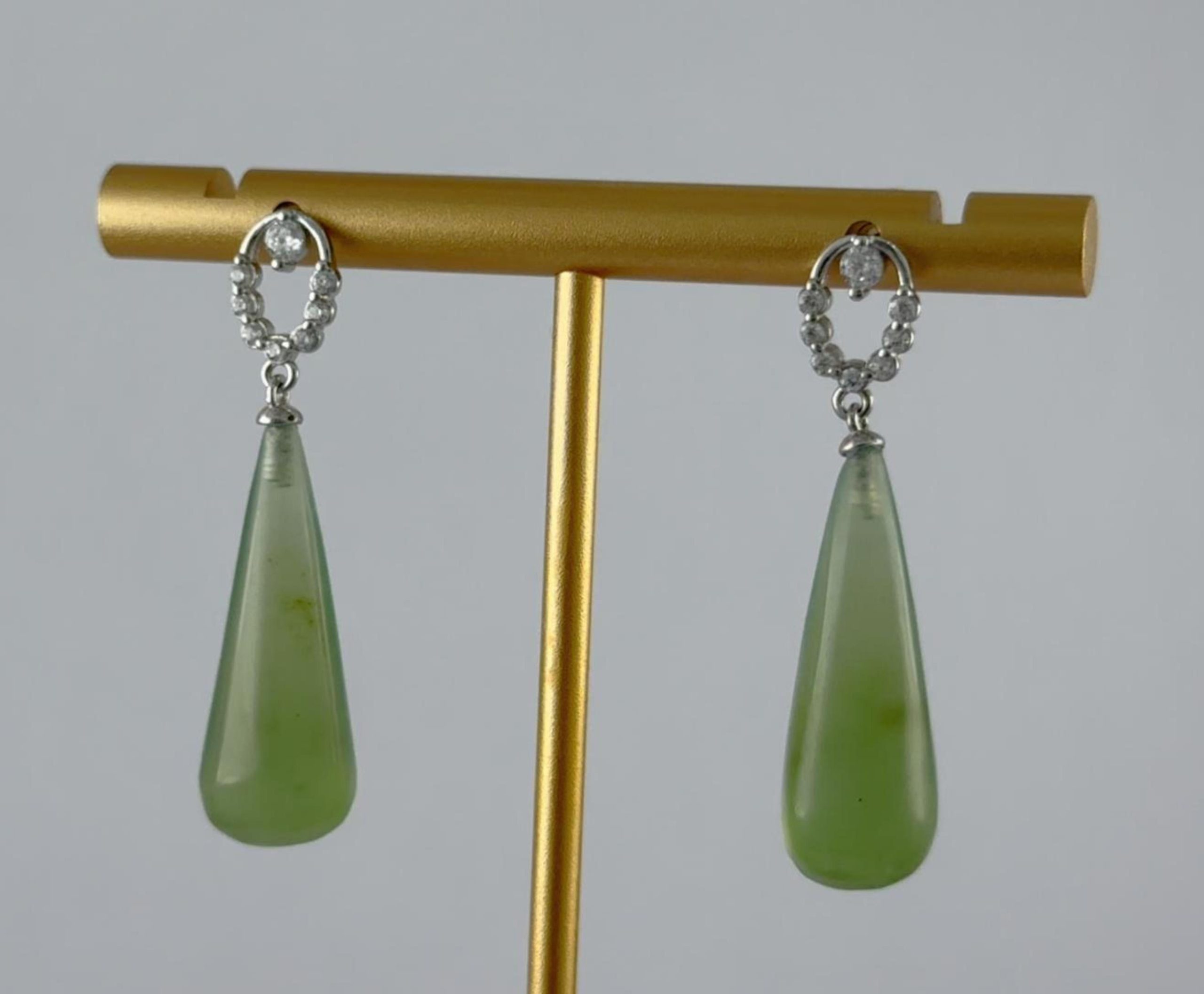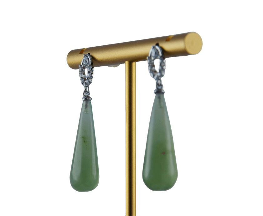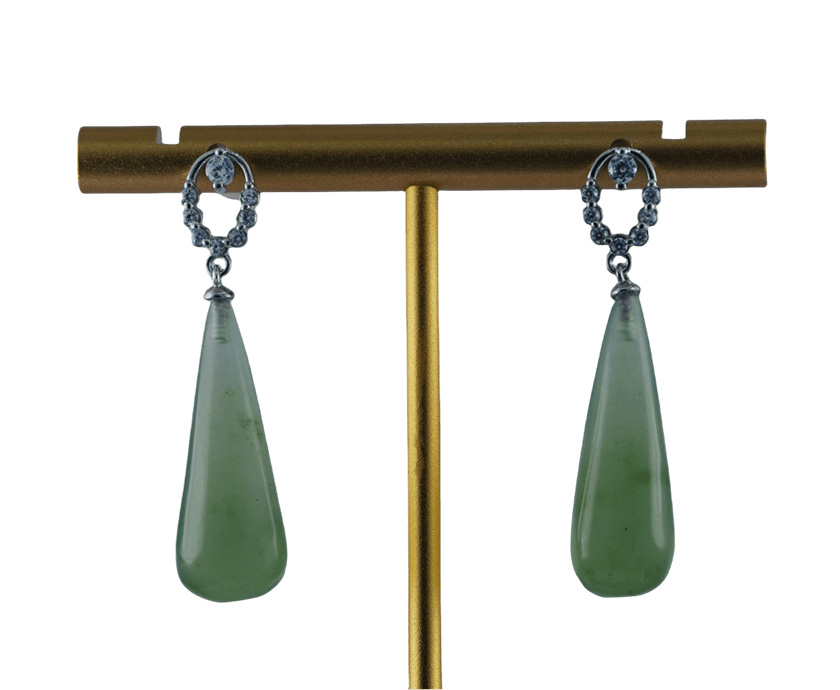 主体以925银丝,弯绕成一道圆圈。银圈之上,精心镶嵌着一排璀璨夺目的细小水钻。银圈之下,悬垂一滴天然玉石手工雕刻而成的锥形水滴。玉石温润的质感与淡雅色泽,与上方银钻的清冷璀璨形成温柔对比。每一滴锥形水滴都独一无二,蕴含天然纹理,造型圆润饱满,线条流畅,象征着纯净、柔韧与永恒不息的生命力。它随着步履轻盈摇曳,动静之间,尽显东方婉约与现代简约的融合之美。