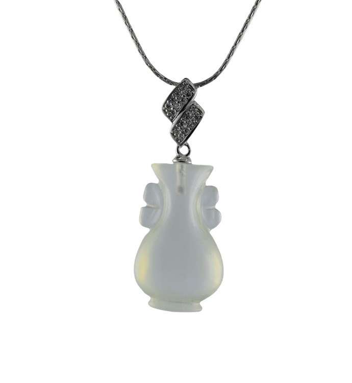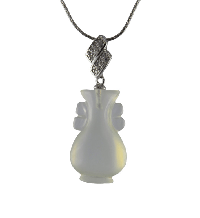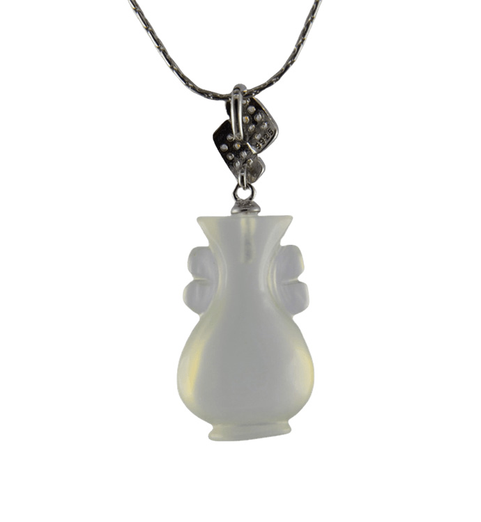 2. 银色长方形吊环上连接如意瓶,吊环上镶嵌满小水钻,给人奢侈清爽的感觉。