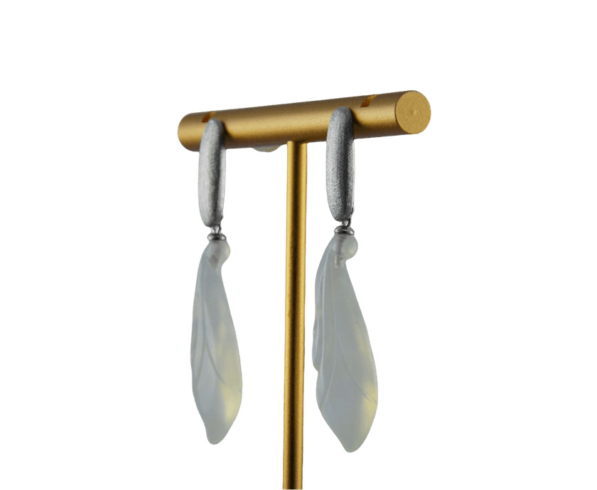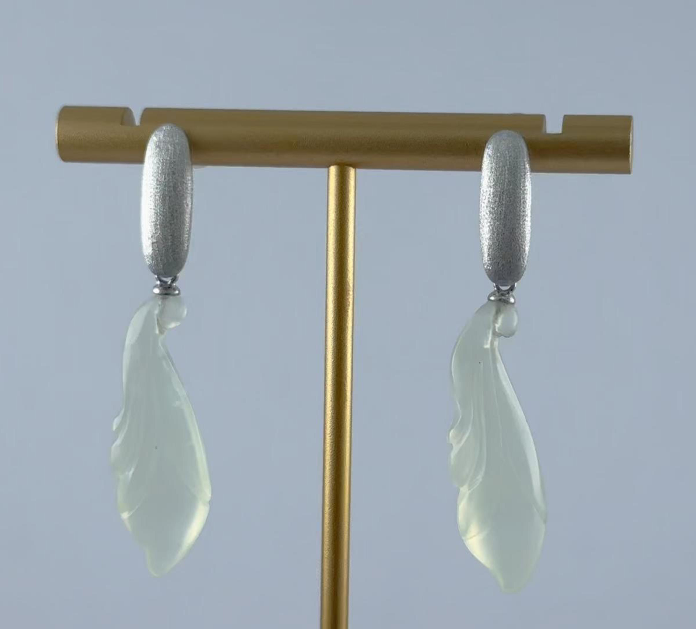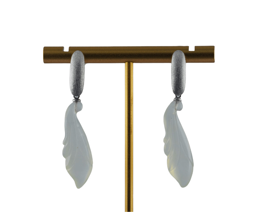 主体以925银打造为修长的椭圆形轮廓,表面经细腻的磨砂工艺处理。在于椭圆之下悠然垂落的天然玉石手工雕刻玉兰花。匠人依循玉石天然肌理与色泽,精琢出玉兰含苞的形态。花瓣层叠舒展,线条柔美而富有生命力。玉质的温润与银的磨砂质感相得益彰,一光一润,一素一雅,共同诠释着“清雅”二字。玉兰,寓意高洁、真挚与报恩,是东方美学中品格与风骨的象征。