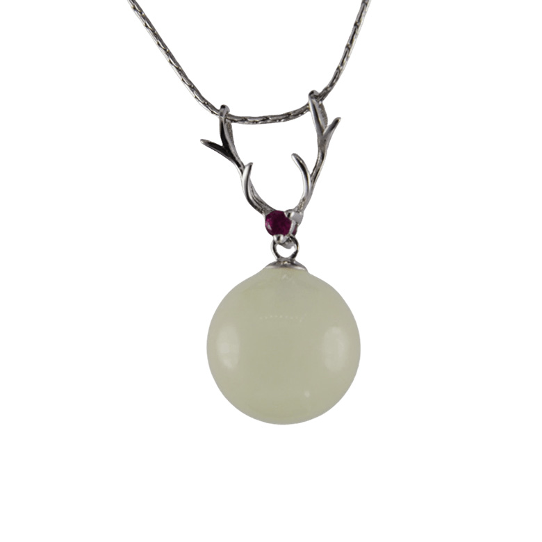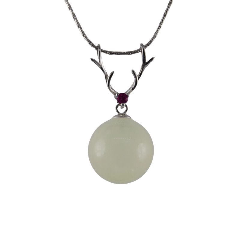 材质:吊坠托为925银;大珠子为天然的白冰玉料。