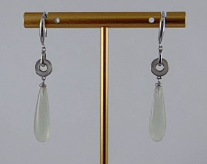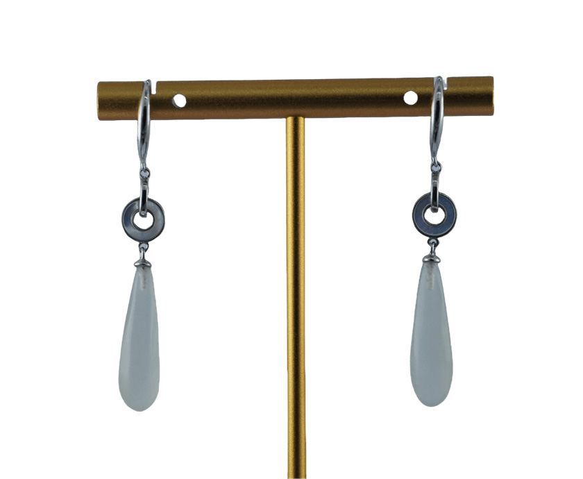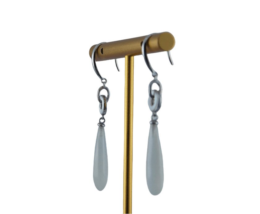 这款耳钩采用高品质925银为基底,质地纯净,亲肤不易过敏。两枚环环相扣的银环,环身上精心镶嵌贝壳薄片。双环之下,垂落一滴浑然天成的天然玉石。我们坚持使用天然玉料,并由匠人全手工雕刻成细长水滴形,是任何人工材料无法比拟的生命力与珍贵感。贝壳的绚烂与玉石的质朴,一轻灵一厚重,一璀璨一含蓄,在碰撞中激发出别样的艺术美感。