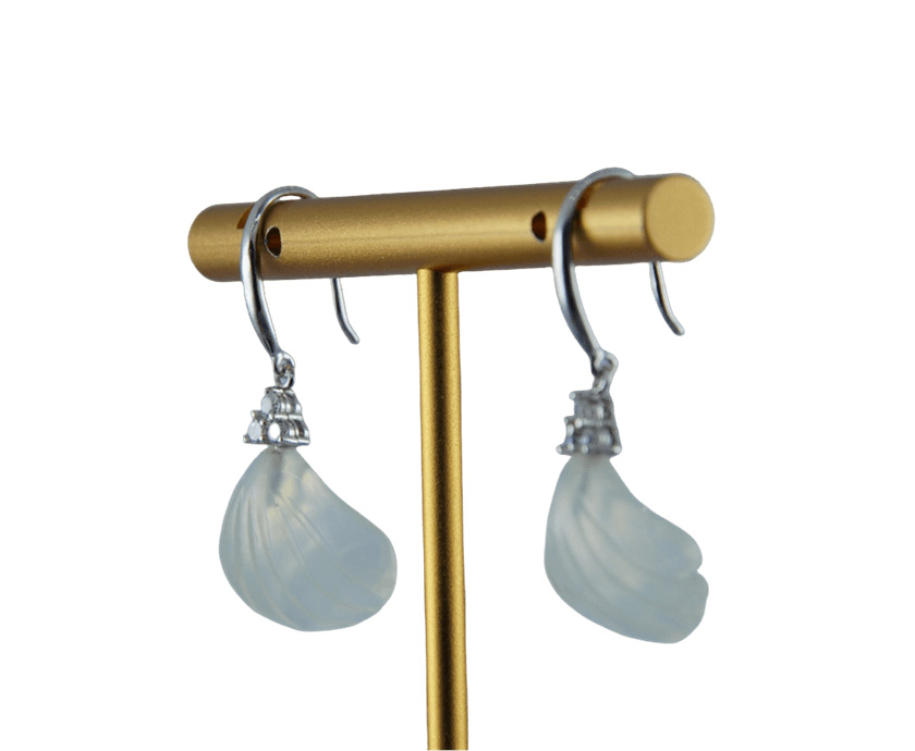 这款耳钩采用高品质925银为基底,质地纯净,亲肤不易过敏。匠心镶三颗璀璨水钻与高亮锆石,瞬间点亮面部轮廓。耳钩的灵魂系于下面那枚天然玉石雕刻的贝壳。我们坚持使用天然玉料,并由匠人全手工雕刻成型,最大化保留玉石本身的天然纹理与柔和气韵,是任何人工材料无法比拟的生命力与珍贵感。伴随你,在纷繁世界中摇曳出一片属于自己的静逸天地。