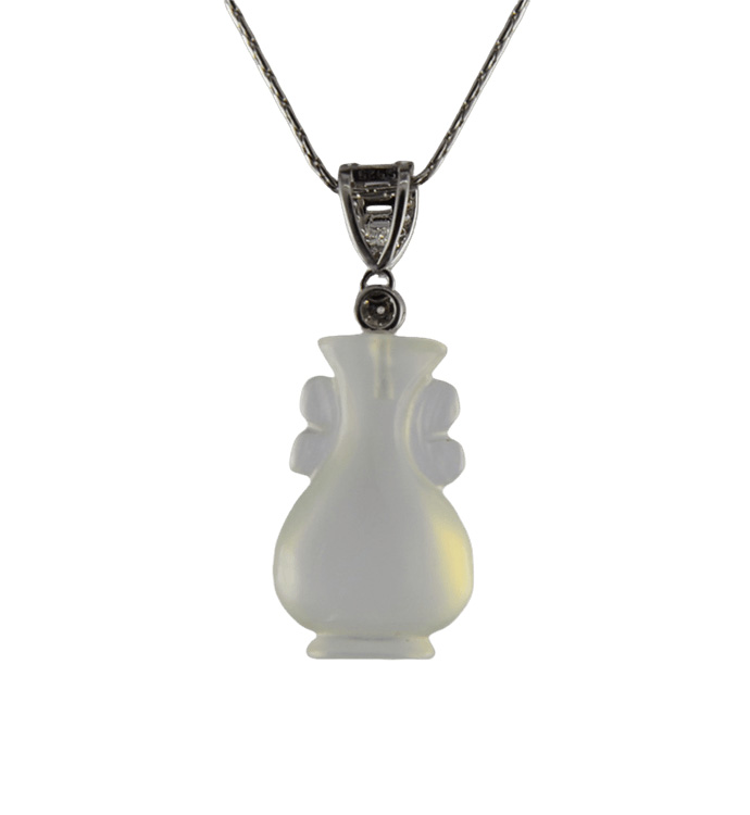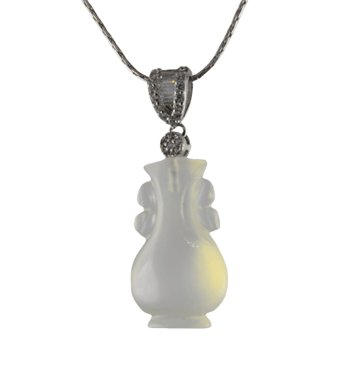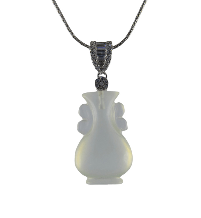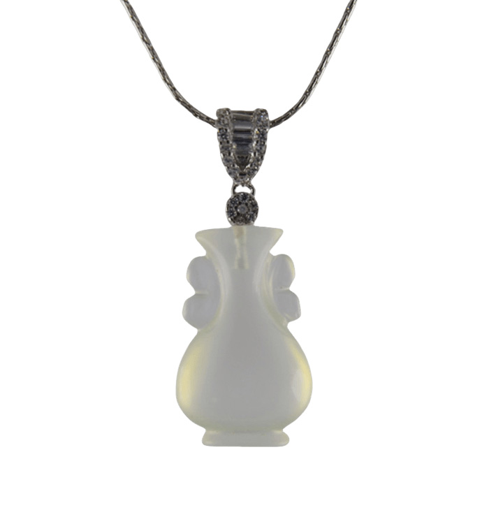 2. 银色V形吊环上连接如意瓶,吊环上镶嵌大小水钻,给人奢侈清爽的感觉。