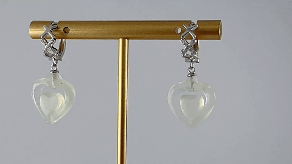 1. 这款耳环采用高品质925银为基底,质地纯净,亲肤不易过敏。匠心密镶数颗璀璨水钻与高亮锆石在中间的X形上,营造出群星环绕的效果。耳环的灵魂系于下面那枚天然玉石雕刻的桃心。我们坚持使用天然玉料,并由匠人全手工雕刻成型。每一道弧线都让桃心的肌理栩栩如生,是任何人工材料无法比拟的生命力与珍贵感。玉石独有的莹润光泽,在璀璨钻光中平添一份温婉含蓄的东方雅韵。