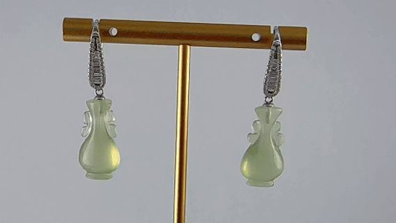 1. 耳钩的主体是以925银勾勒出如水滴般流畅饱满的形态,再将甄选水钻锆石紧密镶嵌其表面,形成充满现代感与力量感的水滴钻石;下面是温润内敛,承载传统文化与手作温度的玉石如意瓶。一明一暗,一动一静,一西方宝石之光华,一东方美玉之气韵,二者碰撞却奇妙交融,创造出一种既时尚夺目又底蕴深厚的独特美学。