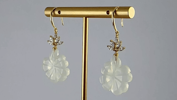 1. 耳钩用925纯银勾勒出枝桠自然分叉、舒展的形态,在于枝梢上镶嵌的数颗精选大颗粒水钻。树根是一枚天然玉石手工雕琢的四叶草。如同树根承接了整夜星光与晨雾后,凝结出的第一滴甘露。树冠向上探索天空,汲取星光;四叶草向下回归大地,凝结精华。这组耳饰,构建了一个微型的、完整的能量循环。它寓意着佩戴者既拥有如树般向上生长的力量与野心,在现实世界开枝散叶,光芒四射;又保有如水滴般纯净透彻的内心与智慧,懂得沉淀与回归。