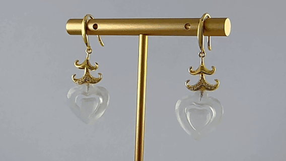 1. 耳钩采用925银一体成型工艺,双层卷边帽子设计经过多次打磨试验,帽檐内侧进行防过敏处理,佩戴舒适度经过严格测试。桃心采用天然玉石手工雕刻。雕刻采用传统“汉八刀”技法与现代精雕工艺结合,每件作品需经选料、设计、粗雕、细雕、抛光等12道工序。真正的优雅,并非浮于表面的光芒,而是当繁华落尽、冠冕摘下之后,灵魂深处那颗依然豁达勇敢的心。