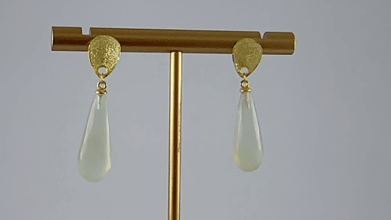 1. 耳钩采用925纯银薄片精心锻造,无负重感,贴合舒适。表面经过精细的磨砂处理,呈现出柔和内敛的哑光质感。下方连接着由天然玉石手工雕刻而成的细长水滴。经由匠人精心雕琢,造型饱满圆润,线条舒展流畅,保留了玉石天然的温润质感,与磨砂银的冷冽形成巧妙对比。它不喧哗,自有声。适合追求简约美学、注重细节质感的你。