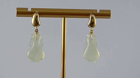 1. 耳钉用925银精制而成,打磨成饱满的水滴形,表面呈现细腻的光面质感,纯粹而高级。下方的如意瓶挂坠为天然玉石,全程由经验丰富的匠人手工雕琢。每一刀的深浅、每一处的弧度都凝聚着匠人的心血。以光面的纯粹衬托玉石的温润,不张扬。无论是日常通勤,还是静处时光,它都能在耳畔静静守候,为你增添一份从容淡定的气质。