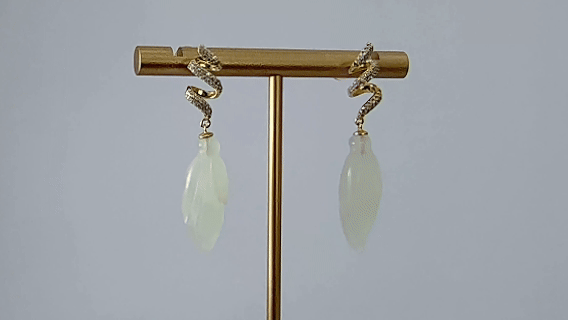 1. 耳钩以925银为基底,佩戴舒适,不易过敏。采用螺旋形设计,上面满镶璀璨的小水钻锆石。下方垂坠的天然玉石,它被工匠手工雕刻成栩栩如生的玉兰花。温润的玉石质感与花瓣的柔美曲线完美融合。银与钻的闪耀,衬托着玉石的温婉,既有自然的清新脱俗,又不失精致优雅。
