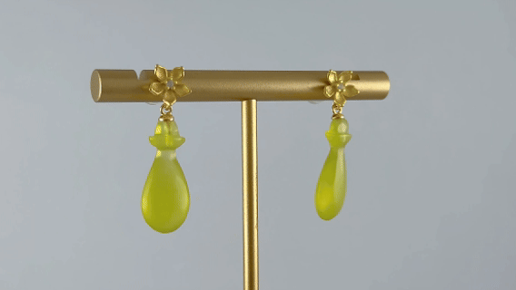 1. 耳钉用925银纂刻立体的花瓣。每一片都饱满舒展,花瓣的弧度经过精密计算,保持着盛放的姿态。在花心深处,镶嵌着一颗璀璨的小水钻锆石,折射出细碎的光芒。下面连接的是天然玉石手工雕刻的平安瓶。天然的纹理温润如水。线条流畅。上端是写实的立体银花,下端是写意的玉石平安瓶,一实一虚,一刚一柔,形成绝妙的视觉平衡。花心的水钻成为连接二者的光点,让整件作品充满层次感和故事性。