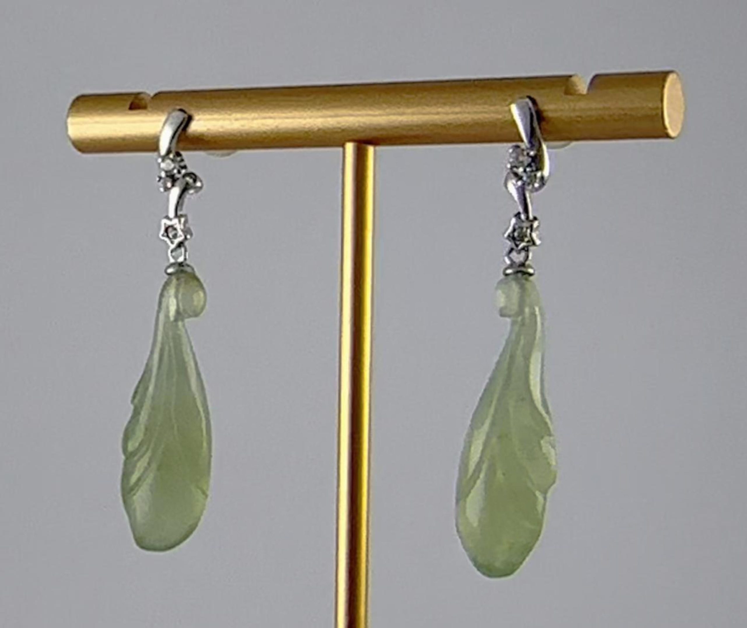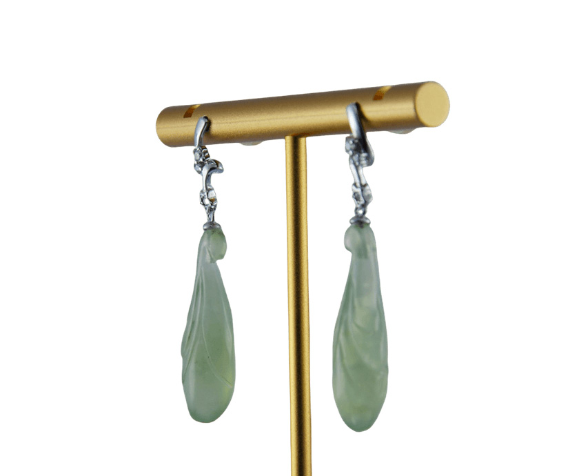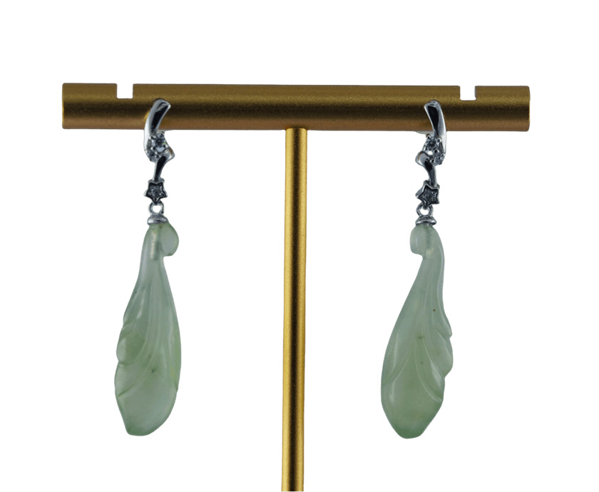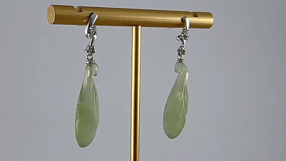 1. 耳钉用925银条攥刻成的两节形,在中间和下面连接处镶嵌小水钻锆石。下端垂挂着那颗天然玉石手工雕刻的玉兰花。每一块玉石都经过匠人的精挑细刻,天然的纹理温润如水,触手生温。既有银质的清冷质感,又有玉石的温润柔情,更有水钻的精致点缀。垂坠式两节设计能在视觉上拉长脸部线条,起到修饰脸型的效果。