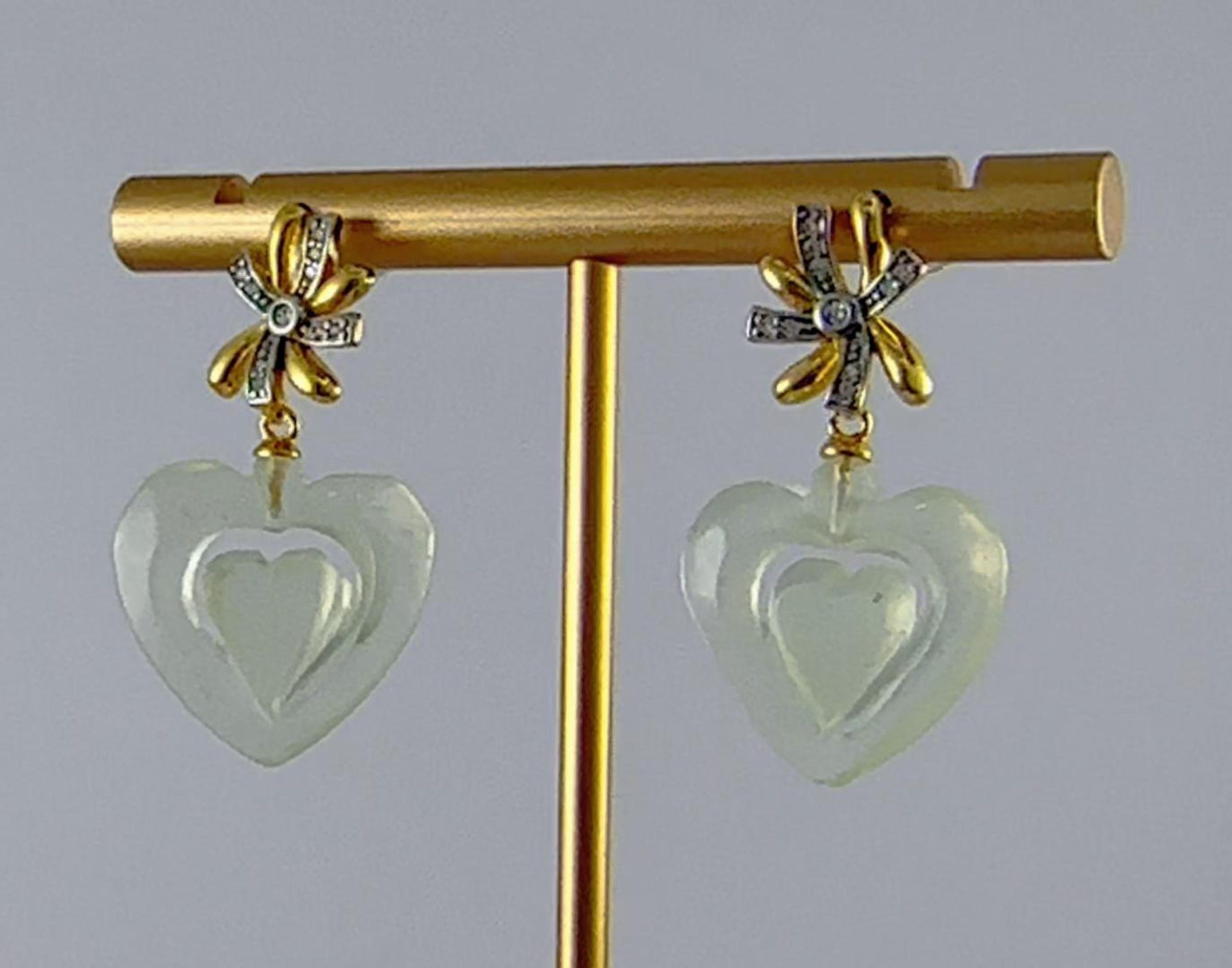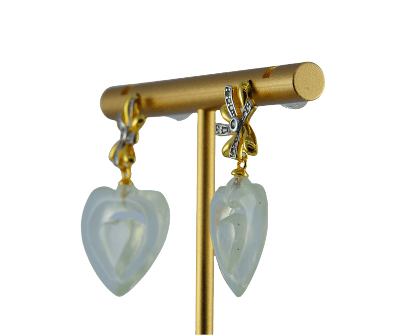 1. 耳钉采用925银条打造成枫叶造型,相间叶电镀成金色,银色叶面上满镶璀璨的小水钻锆石。下方的桃心挂坠为天然玉石,全程由经验丰富的匠人手工雕琢。每一刀的深浅、每一处的弧度都凝聚着匠人的心血,为整体增添了一份温润的东方韵味与深沉祝福。它适合追求独特格调、热爱生活美学的你,为日常造型注入一份闪耀而不失底蕴的艺术气息。