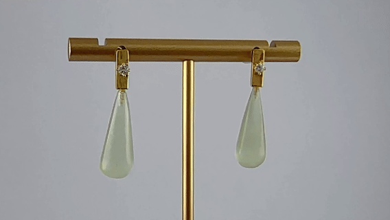 1. 耳钉是一枚长方形925银基底,在它的中间有一颗水钻锆石。光芒下是一枚天然玉石手工雕刻而成的锥形水滴。玉石温润的质感,是任何人工材料都无法复制的生机。匠人依据玉料的原生形态与色泽,磨砺出天然曲线与层叠肌理。无论是赠予挚爱,还是作为对自己的期许,它都在轻声诉说:最坚定的光芒,终将被最温润的胸怀所承载与铭记。