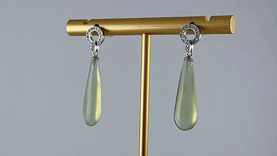 1. 这款耳钉以925纯银精心锻造出浑圆饱满的圆环,并以精湛工艺在环身密镶璀璨小钻,每一颗都经过精准排布,当光线拂过,整枚圆环便化作一道流动的星轨。星环之下,一滴天然玉石雕琢而成的水滴悄然垂坠。匠人依据玉石天然的肌理与色彩,手工打磨出圆融温润的形态。玉质的莹润光泽,与上方钻石的璀璨火彩形成迷人的对比——一边是人间星河的灿烂喧哗,一边是天地清露的静谧深邃。