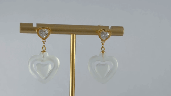 1. 耳钉是一颗夺目的桃心形切割大水钻锆石。它采用高品质锆石,火彩绚烂,在耳畔绽放无与伦比的耀目光芒。围绕主钻桃心的边缘,匠人以古老的金工技艺,手工密篆雕刻出一圈精致细密的小珠纹。主钻之下悬垂的那枚天然玉石手工雕刻的桃心。玉石汲取自然精华,质地温润,色泽柔和,触感生温。两颗桃心,一上一下,一璀璨一温润,一现代一古典,形成巧妙的呼应。玉心寓意着“一片冰心在玉壶”的纯洁真情,更代表着“心心相印,永结同心”的美好祝福。