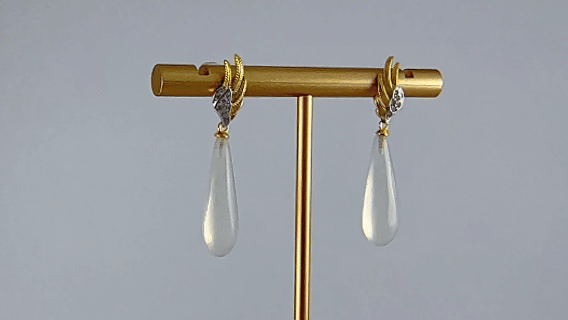 1. 当神话照进现实,一只浴火的凤凰停驻耳畔。我们用925银勾勒它栖息的姿态——纯白银丝如月光织就的巢,细密镶嵌的璀璨水钻是凤凰身披的星河。羽翼轻展,每一丝金羽皆由匠人亲手雕琢,在光线下流淌着太阳的碎芒。向下延伸,天然玉石雕刻的水滴,如同凤凰旅途中的意外馈赠。玉石特有的柔光与润泽,中和了金属的锐利,增添一份大自然的呼吸感。水滴的手工雕痕清晰可见,那是匠人与材料之间的温柔对话。每一次佩戴,都是与古老文明的温柔触碰,亦是现代女性刚柔并济的优雅宣言。