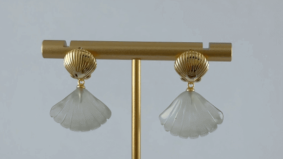 1. 耳环上部采用925银精心锻造,匠人以细腻的刻刀,在银质表面纂刻出贝壳天然的细密纹理——一道道深浅有致的纹路,真实而生动。银贝之下,连接着另一枚由天然玉石手工雕刻而成的贝壳。玉的温润被匠人巧手雕琢成玲珑的贝形,与上方的银贝遥相呼应,仿佛大贝护着小贝。当银的冷冽遇见玉的温润,当雕刻的纹理遇见天然的质感,便成了这对耳环最动人的语言。佩戴于耳际,随着步履轻轻摇曳,仿佛能听见远方的潮汐,一声一声,都是心动的回响。