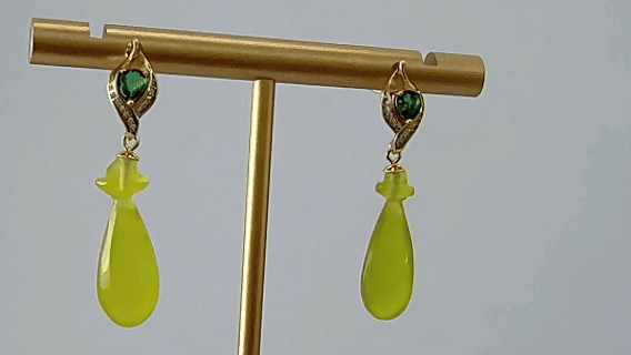 1. S925银塑造的花苞,以抽象而饱满的曲面构成,摒弃繁复,只留取植物初生时最具力量感的形态。苞心镶嵌的绿色大水钻锆石,花瓣上密镶小水钻锆石。下方的平安瓶,是设计中最具人文温度的转折。天然玉石经过精密切割与手工打磨,呈现为简约、流畅的瓶形轮廓。我们着重展现玉石本身的天然肌理与温润光泽,将其化为一种“温暖的重量”。寓意将纷扰净化,将福祉收纳,是极具现代感的护身符。