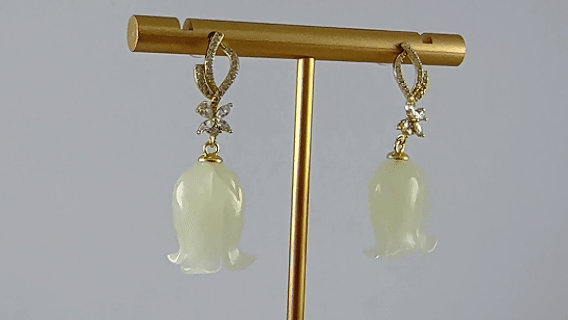 1. S925银塑造的花苞,以抽象而饱满的银线构成。银线上密镶小水钻锆石。与四颗叶子形状切割的水钻锆石组成的四叶草相连。下方相连的是铃兰花,是设计中最具人文温度的转折。天然玉石经过精密切割与手工打磨,呈现为简约、流畅的轮廓。我们着重展现玉石本身的天然肌理与温润光泽,将其化为一种“温暖的重量”。寓意将纷扰净化,将福祉收纳,是极具现代感的护身符。