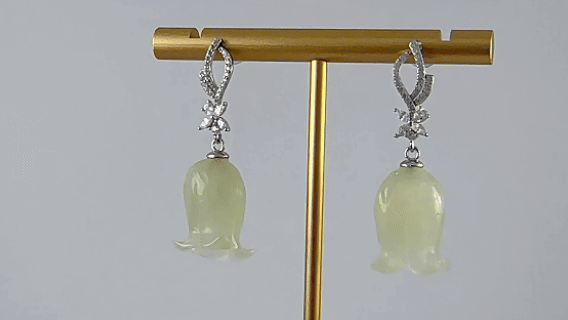 1. S925银塑造的花苞,以抽象而饱满的银线构成。银线上密镶小水钻锆石。与四颗叶子形状切割的水钻锆石组成的四叶草相连。下方相连的是铃兰花,是设计中最具人文温度的转折。天然玉石经过精密切割与手工打磨,呈现为简约、流畅的轮廓。我们着重展现玉石本身的天然肌理与温润光泽,将其化为一种“温暖的重量”。寓意将纷扰净化,将福祉收纳,是极具现代感的护身符。