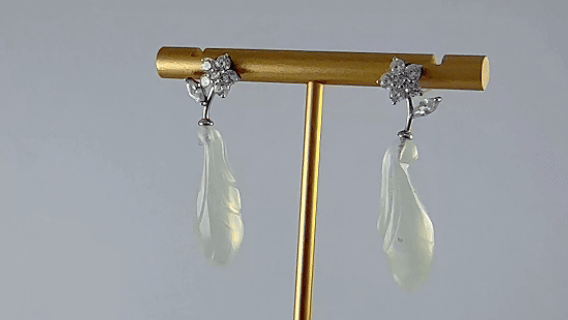 1. S925纯银雕琢的一枝花,正值绽放的时刻。花瓣和叶子镶嵌璀璨水钻锆石。下面垂悬一枚天然玉石雕刻的玉兰花。玉料是沉静的,不喧哗,自有岁月的包浆感。匠人以刀代笔,琢出花瓣层叠的弧度与边缘那一抹若有若无的卷舒,仿佛能嗅到那缕清冽的幽香。玉质的温润与银的质感相得益彰,一光一润,一闪一雅,共同诠释着“清雅”二字。玉兰,寓意高洁、真挚与报恩,是东方美学中品格与风骨的象征。