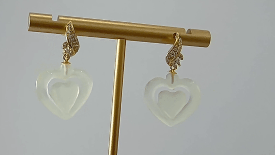 1. 耳钉采用925银丝勾勒出轮廓清晰的树叶造型,树叶内部采用密镶工艺,铺满闪耀的小水钻锆石,增加了整体的华丽感 。树叶旁独立镶嵌三颗较大尺寸水钻,排列成花蕊形状。在于叶片之下连接一枚天然玉石。匠人采用手工雕刻工艺,将玉石打磨成含苞待放的桃心造型。玉石温润的质地与925银的冷冽光泽形成巧妙对比,玉石不似钻石般张扬,却独有东方韵味里的一抹温婉 。当光影流转,上方的水钻璀璨夺目,下方的玉兰静默生香,一动一静,相得益彰。