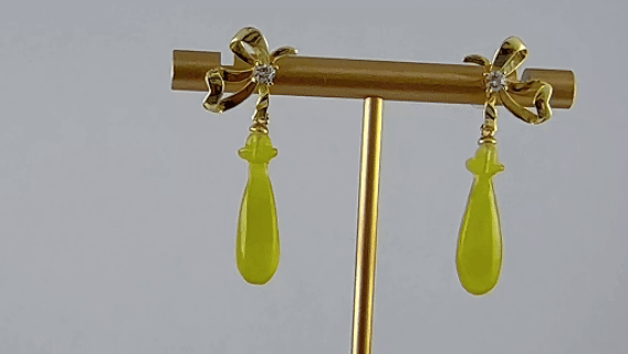 1. 耳钉以“飘带结”为灵感,将风的灵动凝固于925银之中。匠人手工纂刻出立体的飘带结造型,巧妙置于耳钉一侧,形成不对称的现代设计。飘带结中心,一颗水钻悄然镶嵌,成为视觉的点睛之笔。下方连接手工雕刻的天然玉石平安瓶,玉质温润,瓶身饱满,寓意“平顺安康”。佩戴于耳畔,不对称的设计让每一次侧首都呈现出不同的美感。它将“把平安系在身边”的祈愿,化作耳际一抹流动的诗意。