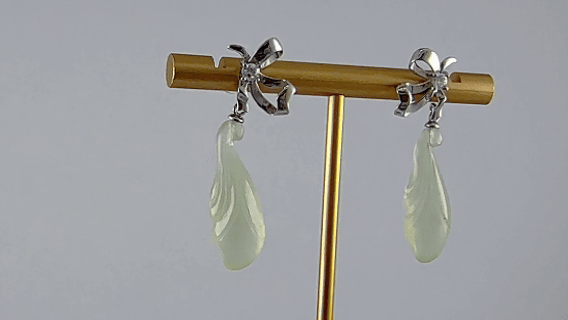 1. 耳钉以“飘带结”为灵感,将风的灵动凝固于925银之中。匠人手工纂刻出立体的飘带结造型,巧妙置于耳钉一侧,形成不对称的现代设计。飘带结中心,一颗水钻悄然镶嵌,成为视觉的点睛之笔。下方连接手工雕刻的天然玉石玉兰花,玉质温润,含苞待放,寓意“幸福归来”。佩戴于耳畔,不对称的设计让每一次侧首都呈现出不同的美感。它将“把幸福系在身边”的祈愿,化作耳际一抹流动的诗意。