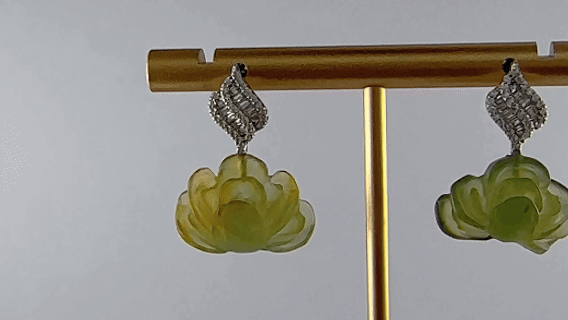 1. 这款耳钉以立体感的火焰形态为灵感。设计师巧妙运用三条密镶小水钻锆石的弧线,层层递进,勾勒出火焰飞舞的轮廓;中间以璀璨的条形水钻连接,增强了结构的层次感。火焰之下,连接着由天然玉石手工雕刻而成的盛放牡丹。每一片花瓣都经由匠人纯手工雕琢,温润的玉石被赋予了生命,呈现出牡丹初绽时的丰盈与立体。花瓣的脉络与卷边栩栩如生,仿佛能嗅到那一抹从火光中孕育出的冷香。925纯银的耳钩,亲肤不过敏,更是佩戴者内心热情的写照——上有不灭的炽热梦想,下有从容的雍容风华。
