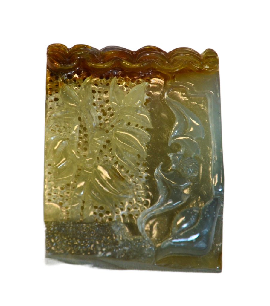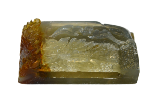 A. 浅灰为底:整件作品以浅灰色玉料为主体,营造出素雅沉静的基调。这种颜色如同宣纸,为红色的俏色提供了最佳的背景——红色在浅灰底色上格外鲜亮,却不显突兀。